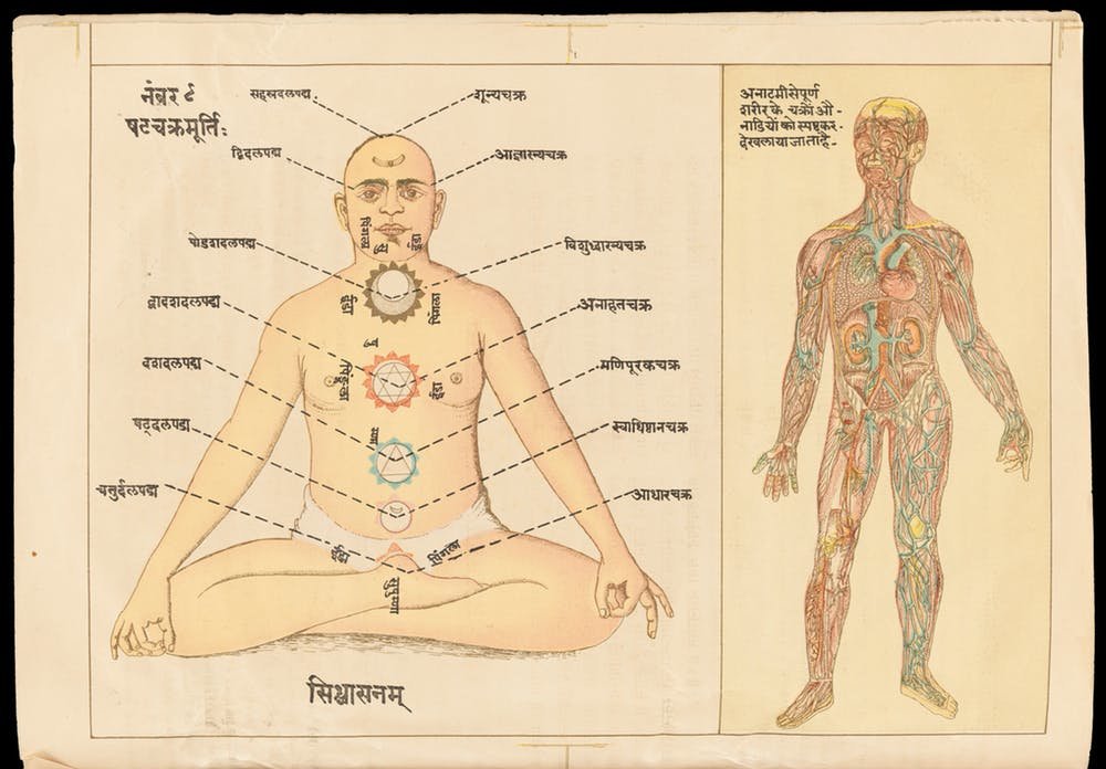 Parallels between the yogic and the medical/anatomical view of the body. Credit: Wellcome Collection, Svami Hamsasvarupa, Sanskrit MS 391., CC BY
